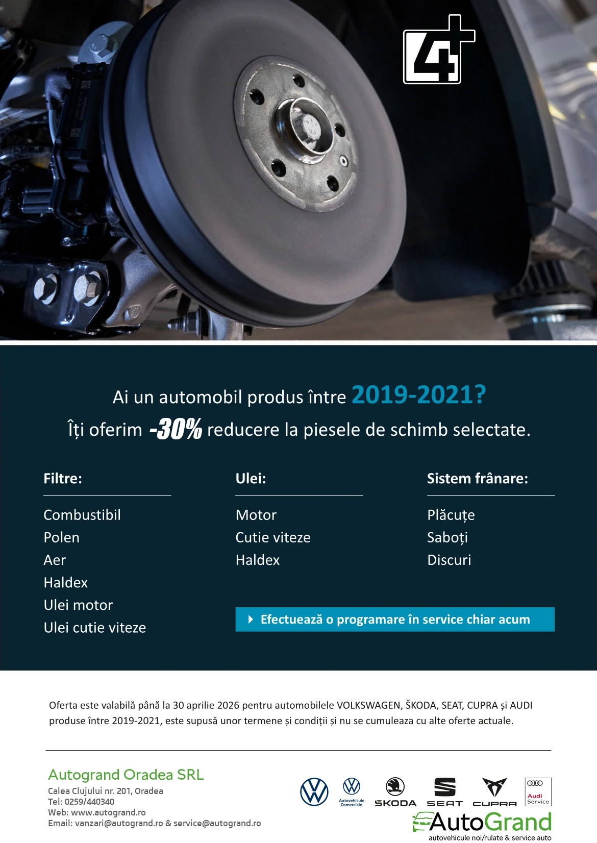 30% reducere la piesele de schimb selectate + 30% reducere la manopera